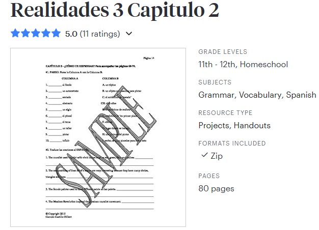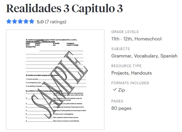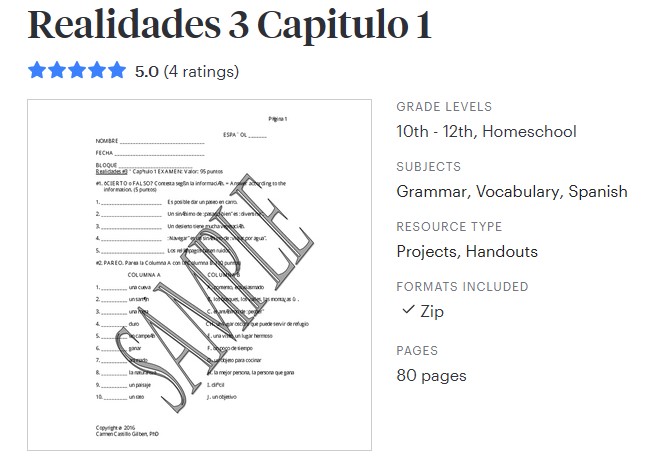 La Tienda Panamena – Link to my Teachers Pay Teachers store where you will find my original resources for sale. These are Spanish materials (lesson plans and more) for the Prentice Hall “Realidades” Series, Books 1, 2, and 3. I also have materials for ALBUM used by teachers teaching Spanish literature and lessons for ABRIENDO PASO, another Spanish textbook. My materials include handouts, exams (chapter tests, midterms and final exams), quizzes for all chapters, crossword puzzles, word searches, and blank verb charts for verb conjugation practice.